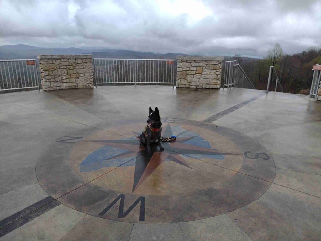 I was able to make an impromptu visit to the park with Radar and stayed with some family for a night. My son and his family are traveling from another park and we are meeting at Devils Fork. The drive up is uneventful and Radar naps most of the way. I stop for gas and a quick snack from the Lakeshop at the junction of SC-11 and the turn-off to Devils Fork. Surprise! Coincidently my son and his family are stopped there as well. I follow their van the remainder of the way into the state park.