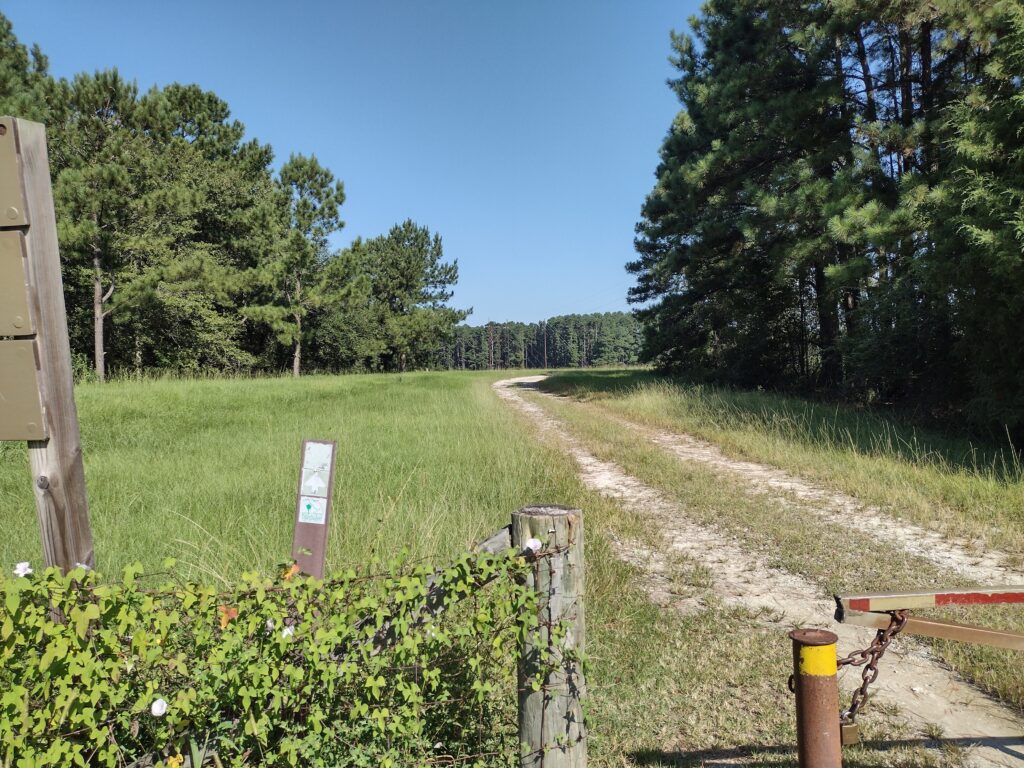 As summer is beginning to wane, I felt the urge to get out on the trail again. I also discovered I need to work on filling in some missing gaps in my Palmetto Trail journey. A little bit of the backstory first. I probably started backpacking trails while in Florida and then Texas before moving to South Carolina. Hiking in South Carolina for me started back in the late 1990’s with the Buncombe Trail in the upstate and segments of the Palmetto Trail starting with a large part of the Swamp Fox Passage. Over time it seems I’ve jumped around on the Palmetto Trail a lot. I’ll blame this on the fact the Palmetto Trail is still a work in progress. Early on the Palmetto Trail was more incomplete than complete and today it still remains not fully connected. I did my first portion of the Lake Moultrie Passage back in October 2003 with a small group of new backpackers from our troop. We did most of what is now section 2 then. I had planned a +10 mile, two night weekend backpacking trip for my troop. We started at the Northern end of the section at the Diversion Canal trailhead. This portion of the trail has a short forest section before coming out onto the dike. By the time we got to the trail in the evening, it would be dark, so the first night I plan on just camping a few hundred yards from the trailhead. There is a small flat open grass spot where a group can stealth camp together near the edge of the woods. There was a designated camp on the trail with a well, maybe about a mile in from the trail head but I believe it’s all defunct now and it doesn’t show up on the current map. Once upon a time someone had set water wells along the trail, I think some were artesian wells and some may have been hand pumps. These were a great resource for drinkable water at the time. However, over the years the well heads have been removed and capped off. Probably because they were not “state-approved.” Anyway, the next day we would get up, break camp, and hike to the designated campsite near Sandy Beach. I remember the first time I did this hike it was hot, humid, and the mosquitos were still out. I had started tarp camping back then and instead of any kind of sleeping bag, I had brought a simple bed sheet to sleep under. Even just the sheet was almost too much to sleep with but it helped keep the mosquitoes at bay. It rained the next day and we backtracked to a road access to come off-trail and head home. I’ve since backpacked this same piece a few times with other folks. Later, in September of 2014, I hiked the lower 10-mile portion of section 1 of this passage with a different troop. One of the youth members had planned a 20-mile day hike along the Lake Moultrie dike from the Southern trailhead as an out & back hike. The weather was great. The trail there mostly runs on the flat top of the dike and is easy hiking. One of the interesting parts of the trail is it takes you through the town of Bonneau. However the open exposed nature of the dike with no shade and the hard surface of the dike and paved roads through town can wear you out fast. The out-and-back concept made the return portion a little boring and a bit of a slog to get finished. We were all very happy to finally get back to camp that night.