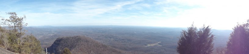Once you are ready to hit the trail again in the morning, you’ll retrace the route back and up in to the park to the Pinnacle Mountain trail and continue up to summit Pinnacle Mountain. The wooded peak can be a little anticlimactic and depending on the time of year you may have a limited view of the surrounding areas. What ever the view you have here, it now gets better as you go. Just to the north of the summit you’ll pick up the Ridge Trail and continue on along the ridge line between the Pinnacle and Table Rock mountains. There is a bit of a saddle at Panther Gap where the Ridge Trail and Table Rock Trail intersect. Depending on your pace and progress, you can either lunch here or continue on and lunch on Table Rock. If you’re inclined, you can ditch your packs out of sight to the north of the trail and slack-pack up the rest of the way to Table Rock (you’ll comeback here later). Some of the remaining trail up to Governors Rock (2854′) and on to Table Rock can be a bit of a scramble. Depending on the time of year, I’ve encountered sheets of ice on Governors Rock which definitely increased the challenge factor. There is a summit sign at the peak of Table Rock but continue past and the trail slopes down and will lead to the South Eastern balds over looking the entire state of South Carolina. It’s probably worth noting here, the bald rock face is a huge curved rock. It slopes more as you head out on the bald more. There is no “edge” to tell you to “stop here.” It just curves down more. Be careful. When you are done enjoying the breathtaking views, simply retrace your route back to Panther Gap and take the Table Rock Trail down and back to the Nature Center where you started. Take your time descending as the Table Rock Trail is steep and can be hard on the knees.